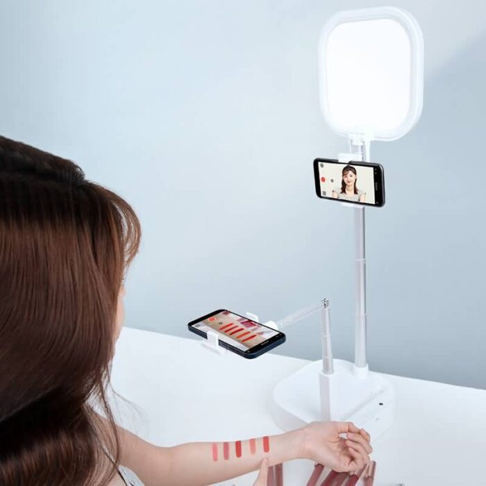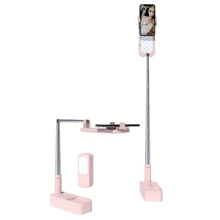 折りたたみ 自撮りライト 卓上 自撮りライト付き スマホスタンド 自撮りスタンド 撮影用 自撮り ビデオ LEDライト white/pink 全2色 SKU:IPC03292025051