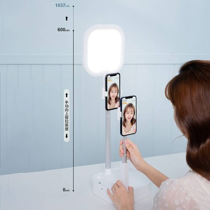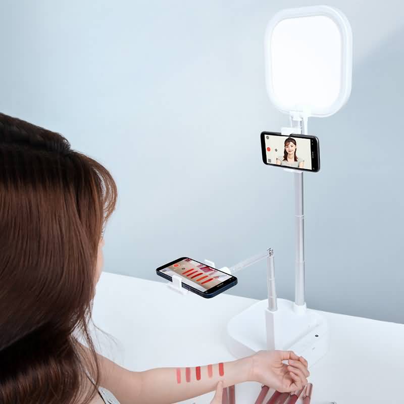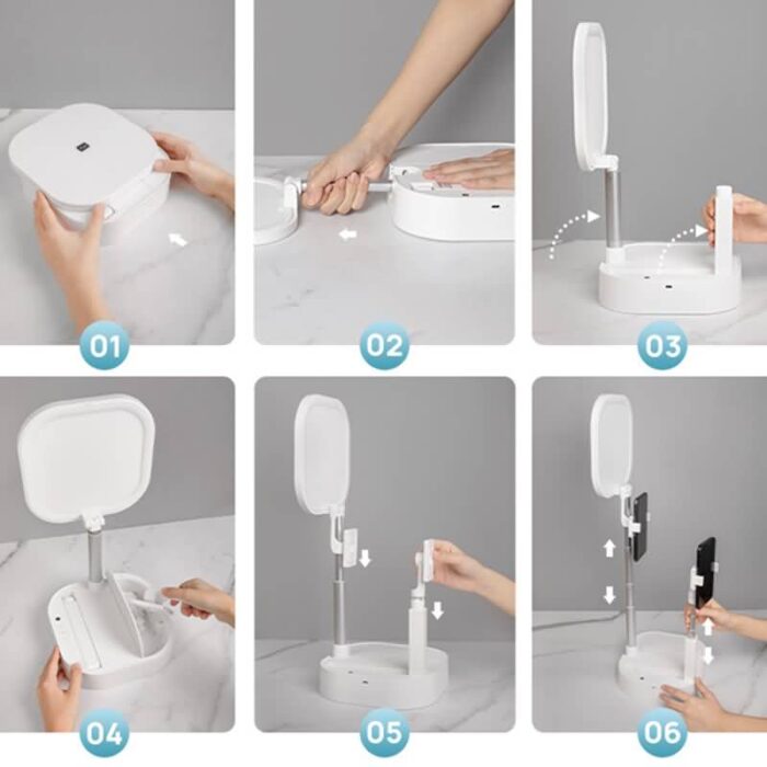 折りたたみ 自撮りライト 卓上 自撮りライト付き スマホスタンド 自撮りスタンド 撮影用 自撮り ビデオ LEDライト 全2色 SKU:IPC03292025051