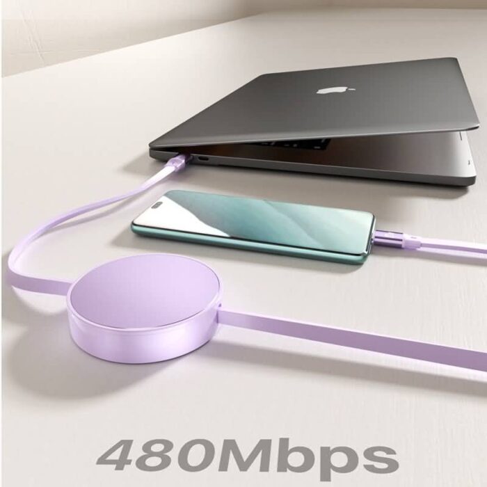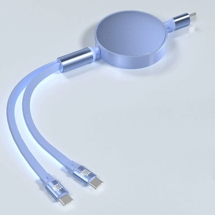 100w 巻取 充電 ケーブル 2in1充電ケーブル 巻き取り usb type-c lightning usbケーブル ライトニングケーブル タイプC black/white/sky blue/purple/rose gold 全5色 SKU:IPC03072025098