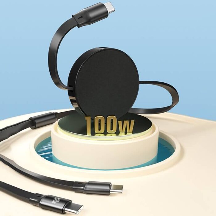 100w 巻取 充電 ケーブル 2in1充電ケーブル 巻き取り usb type-c lightning usbケーブル ライトニングケーブル タイプC 全5色 SKU:IPC03072025098