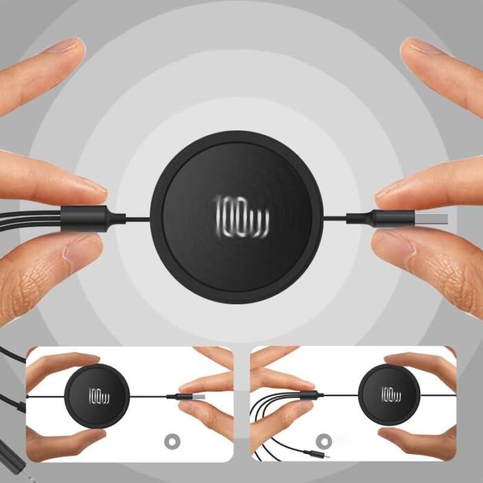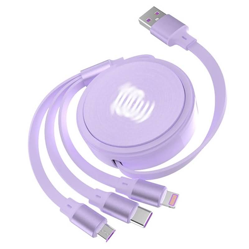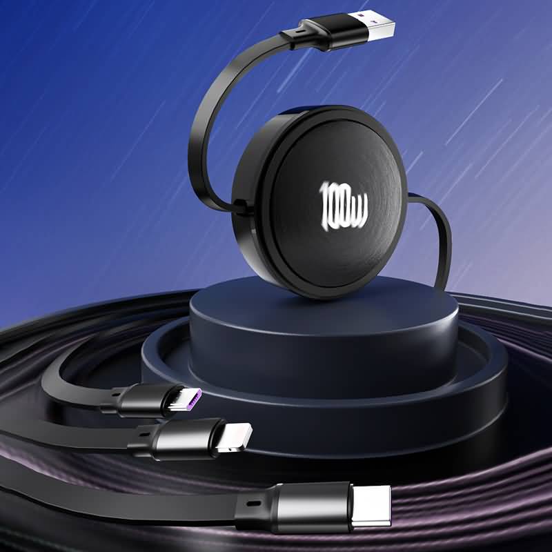 100w 巻取 充電 ケーブル 3in1充電ケーブル 巻き取り usb type-c lightning usbケーブル ライトニングケーブル タイプC 全5色 SKU:IPC03072025097
